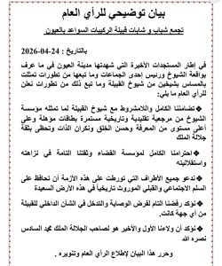 شبيبة قبيلة الركيبات السواعد بالعيون تصدر بيانا للراي العام بشان شنٱن شيخين ومنتخب.